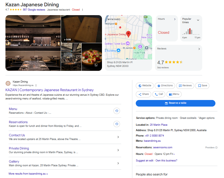 Given Kazan’s premium dining experience, it’s likely that it struggled with being easily found online. Without strong SEO or a well-optimized site, potential diners may not discover it through search.